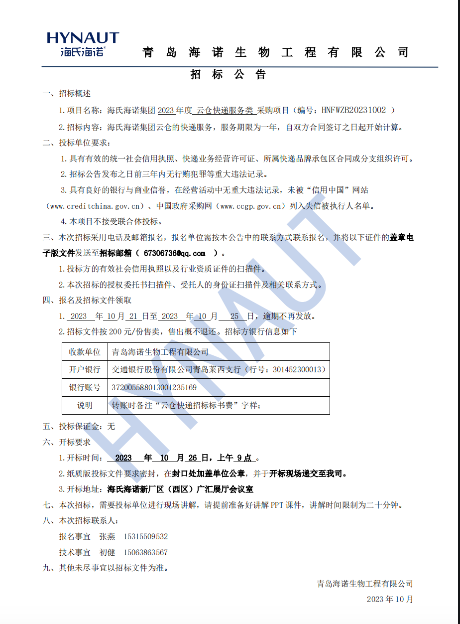 《尊龙凯时-人生就是搏集团2023云仓快递服务类采购项目招标公告》